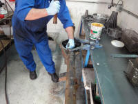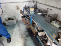 Cool Tool TIP: An old deep fryer basket makes for the perfect holder for the parts to be put into the solvent tank.