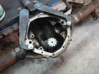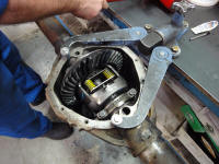 All of our new parts for the rear end were supplied by Gears & Rears. We are using a Detroit Truetrac posi from Eaton, a Quality Gear install kit, National bearings and Quality Gear axles. With our housing gutted it’s time for a steam bath to get it all clean. When assembling a rear end, a shop press is a much better option then a 2x4 and a hammer. Rod used it to  press all of the bearings onto the posi. You want to make sure that everything has the right torque and load applied is something that only a professional has the tools and skills to do.